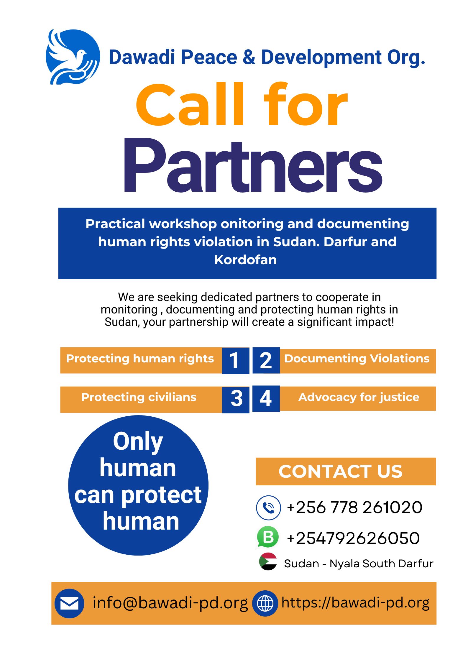 Founding fact: after a very close work and interaction with the locals in Darfur and Kordofan, Bawadi field working team found out that there is a dire need for monitoring and documenting the human rights violation that are now carried out by perpetrators and criminals who are now practicing atrocities against innocent unarmed civilians for are not part of the war.